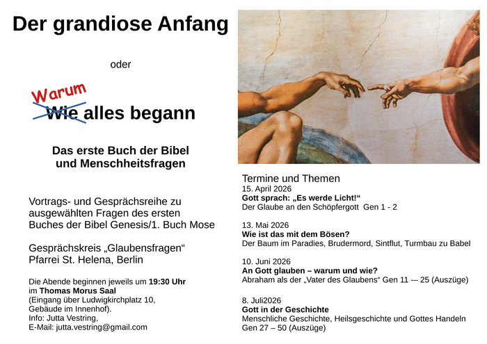 Der Gesprächskreis "Glaubensfragen" startet eine neue Vortrags- und Gesprächsreihe: