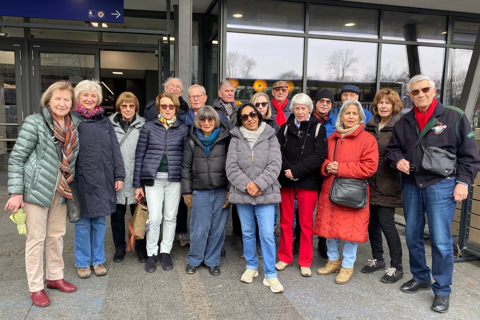 Inzwischen hat die neue Saison begonnen. Im März sind wir wieder mit einem Stadtspaziergang durch den Wedding und Mitte gestartet. Er begann an der Gedenkstätte Berliner Mauer, die an die Menschen erinnert, die bei der Flucht aus der DDR durch den vom Politbüro der SED verantworteten Schießbefehl ihr Leben verloren haben, nur weil sie ihr Land verlassen wollten. Er führte über die Ackerstraße zum Koppenplatz, ein früherer Armenfriedhof. Dort erinnert auf der Grünanlage das 1996 errichtete Denkmal „Der verlassene Raum“ an die Deportation zahlreicher Juden aus dem Scheunenviertel während der Zeit des Nationalsozialismus. Auf dem Bronzeparkettboden steht ein Tisch, daran ein Stuhl, ein weiterer liegt gegenüber umgestürzt auf dem Boden. In die Bodenplatte ist ein Gedicht der Berliner Dichterin und Nobelpreisträgerin Nelly Sachs eingelassen. Nach einer Stippvisite über den historisch interessanten alten Garnisonsfriedhof ging es dann weiter durch das alte jüdischen Viertel Berlins und das Scheunenviertel zur Einkehr am Hackeschen Markt.