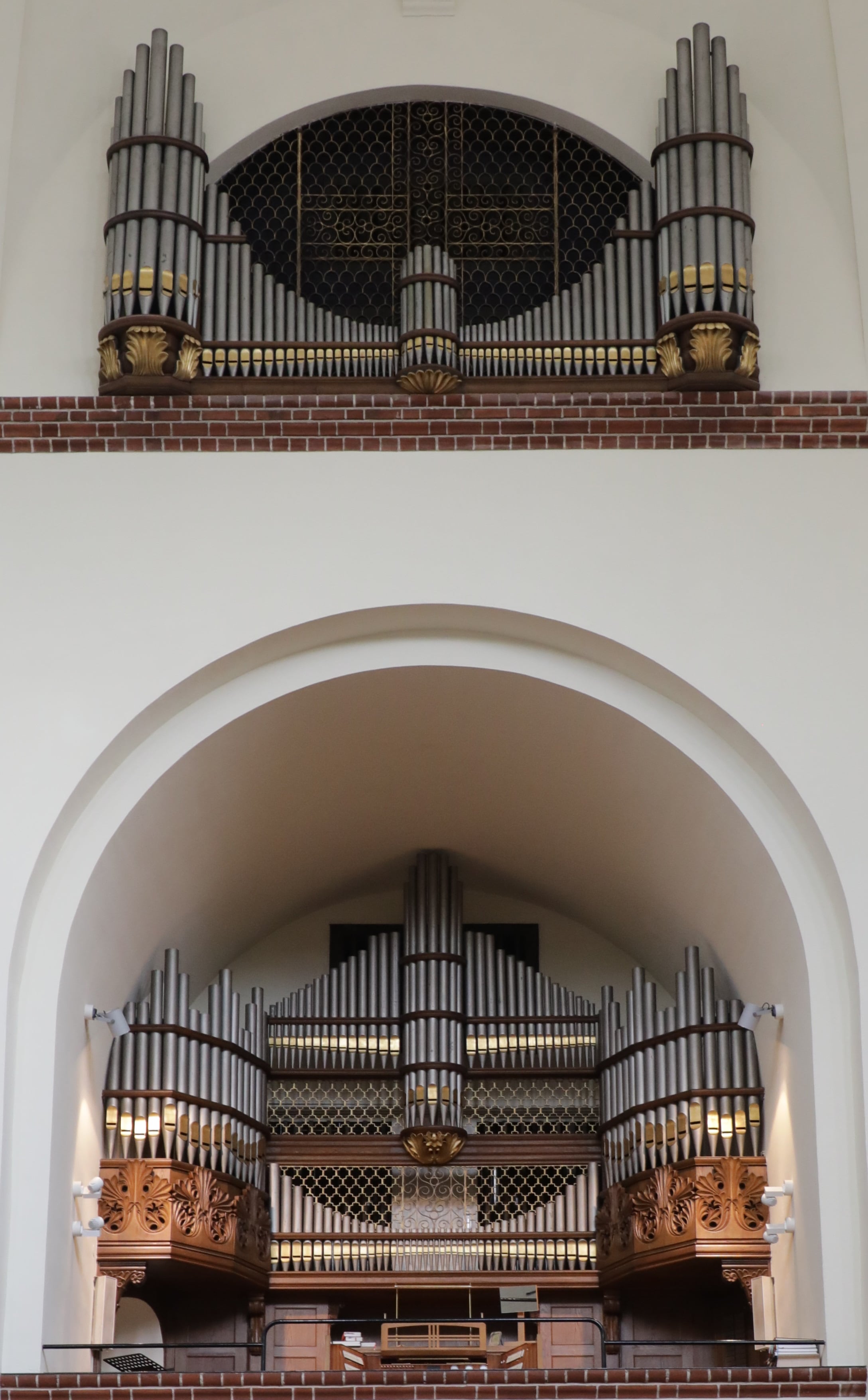 Portrait der historischen Feith-Orgel (1925) von St. Marien, Bergheimer Platz 1, Berlin-Wilmersdorf.